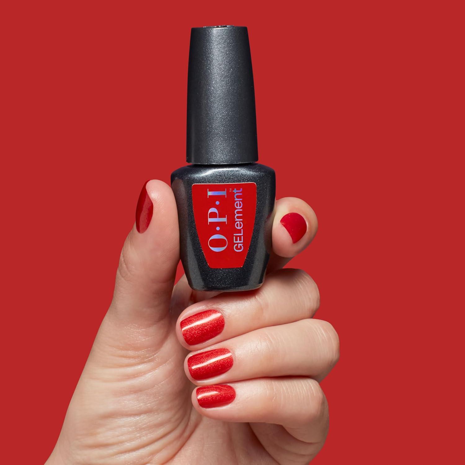 OPI GELement LED Cure Gel Nail Polish System | DIY Salon Quality | Assorted Colors, Base & Top Coat | LED Curing Lamp | Starter Kit + Prep Supplies | Sold Separately | Vegan | Soak Off Removal(Loves Me Loves Me Hot | Semi-Sheer Bright Red Silver Shimmer)
