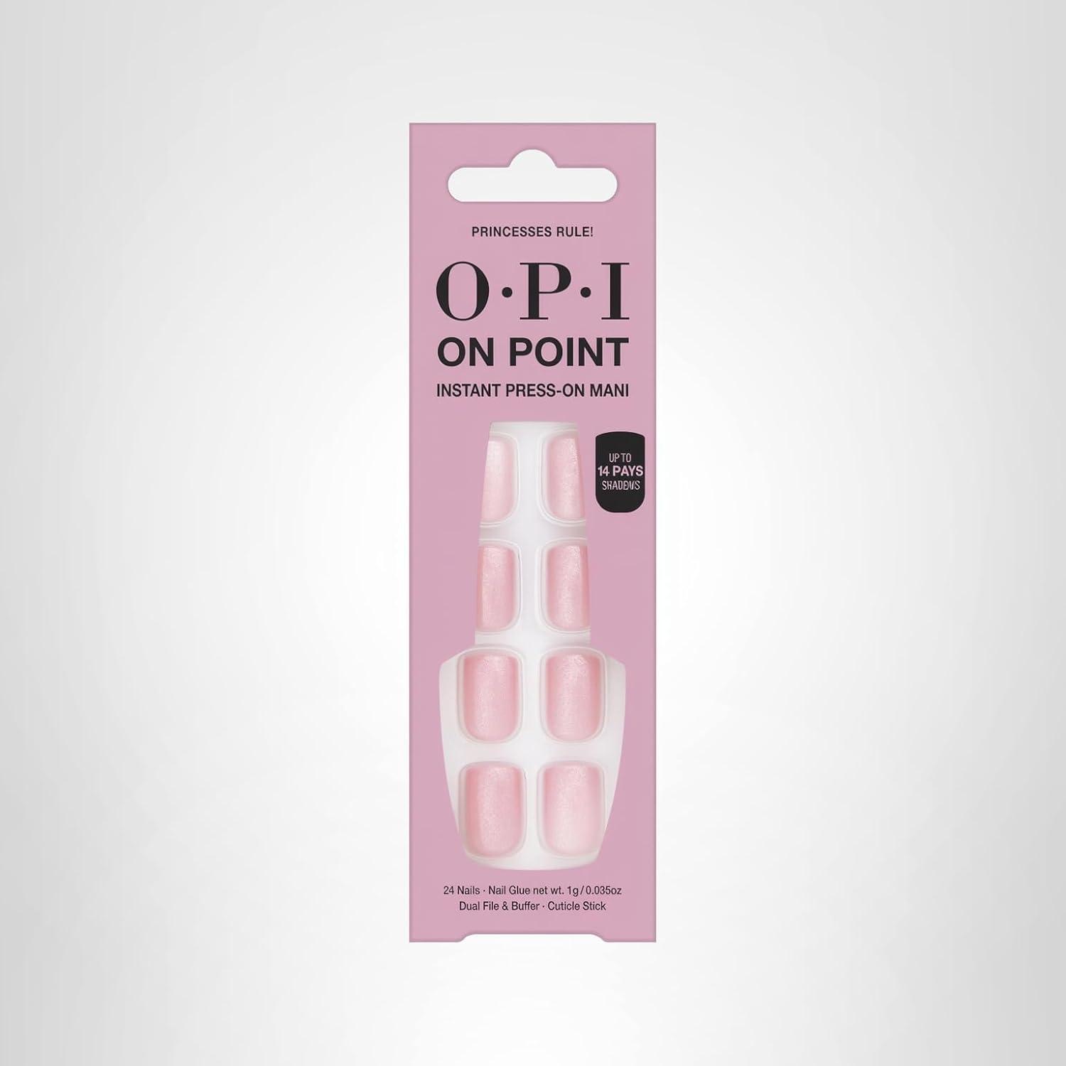OPI On Point Press On Nails | Short Round Classic & Accent Nail Art Press On Nails | 24 Count With Nail Glue | Instant Press-On Mani | Long Lasting, Reusable, Non-damaging(Princesses Rule!)
