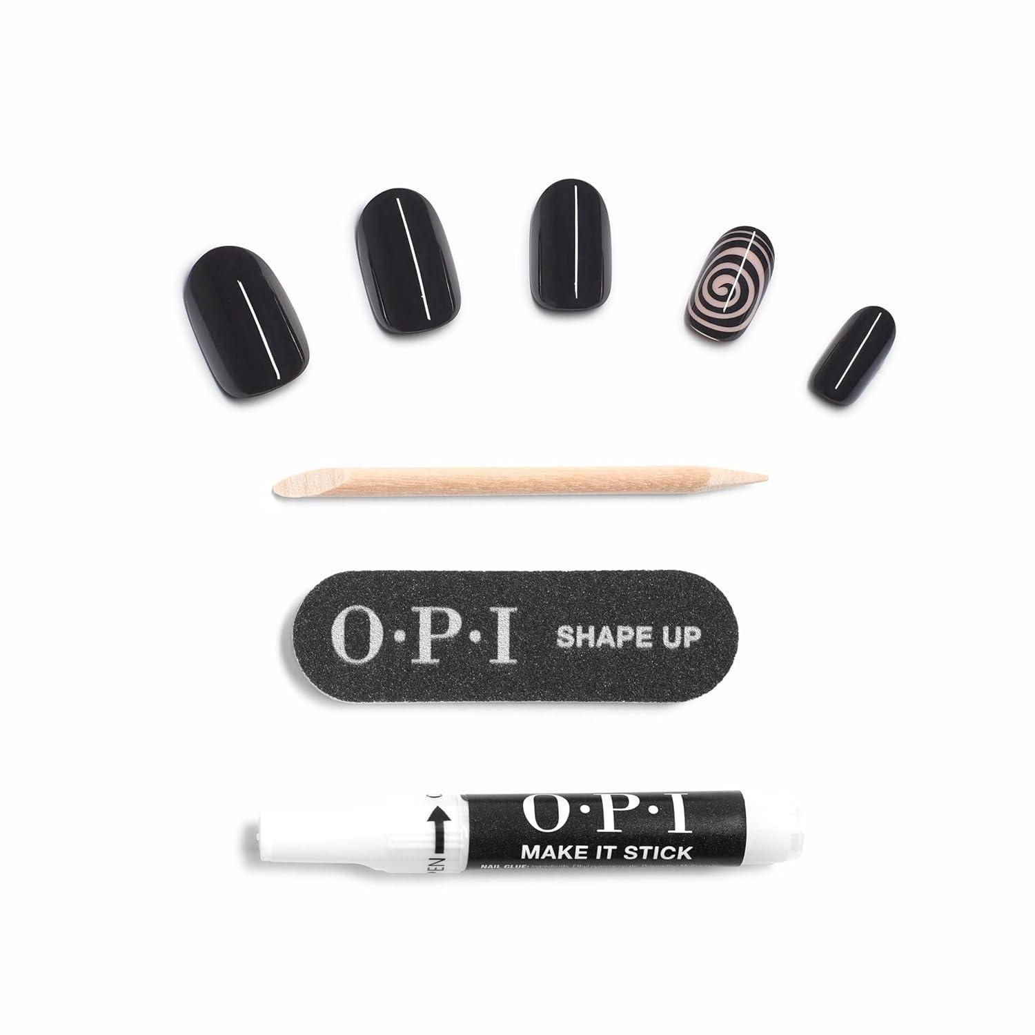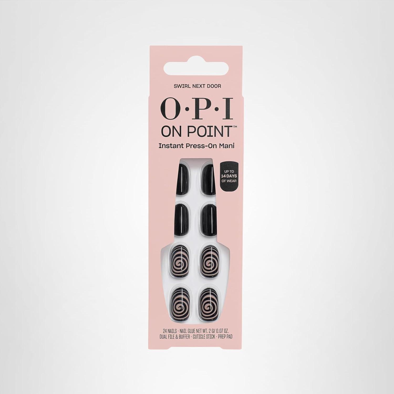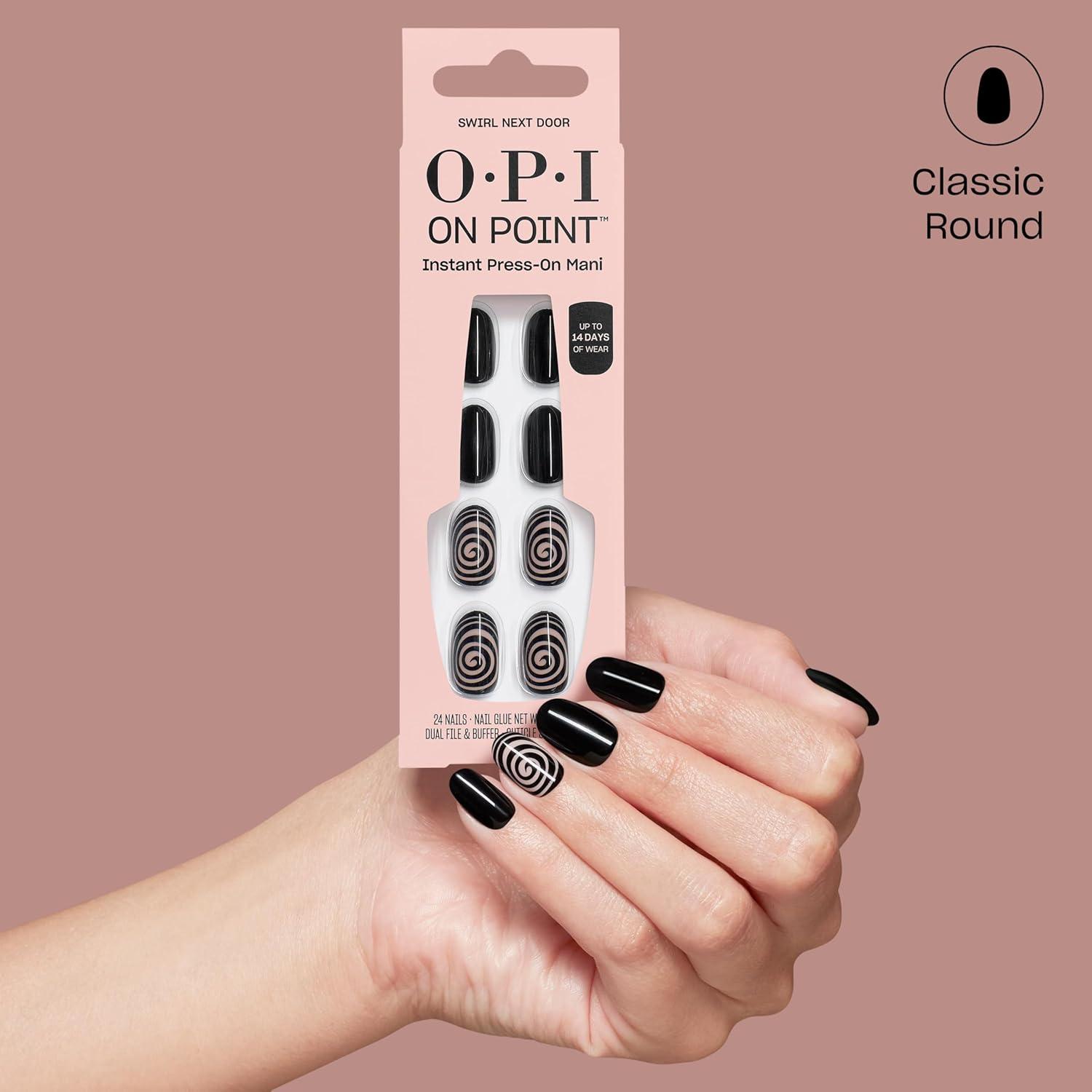 OPI On Point Press On Nails | Short Round Nail Art Press On Nails | 24 Count With Nail Glue | Long Lasting, Reusable, Non-damaging | Fall 2025 Shades(Swirl Next Door | Black with Abstract Swirls Nail Art)