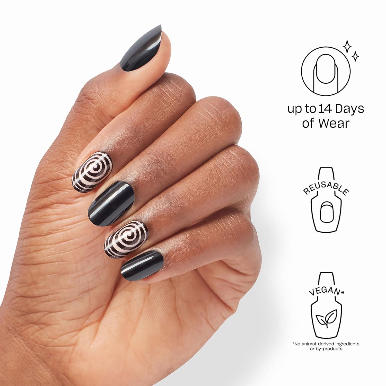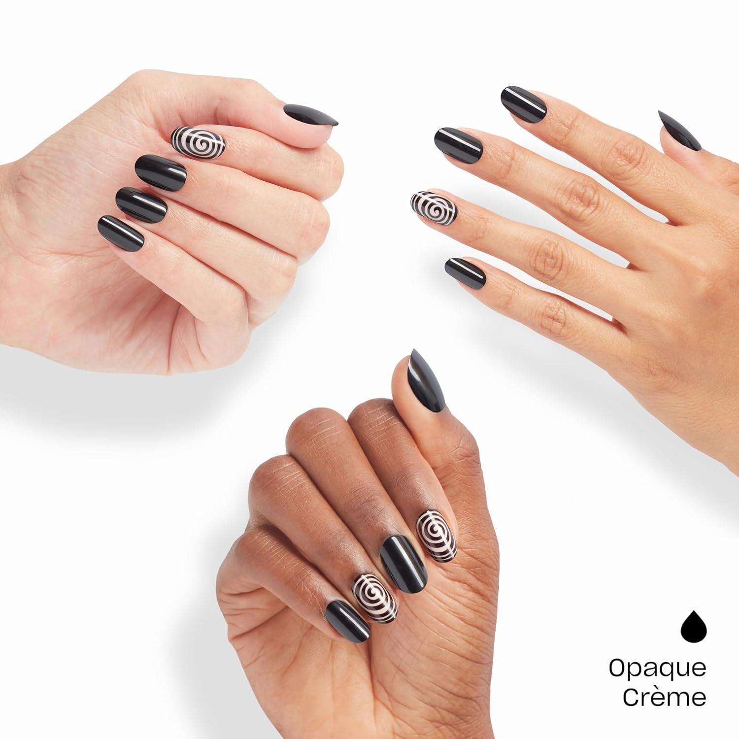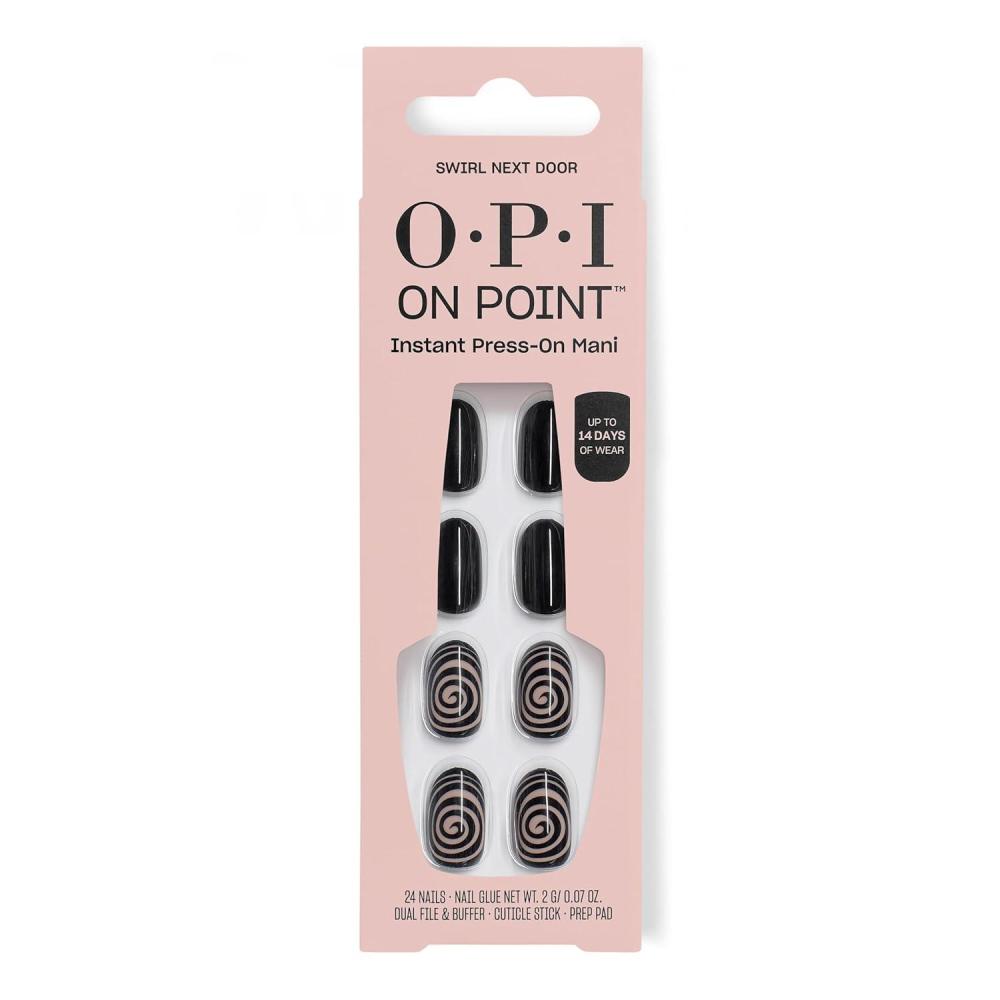 OPI On Point Press On Nails | Short Round Nail Art Press On Nails | 24 Count With Nail Glue | Long Lasting, Reusable, Non-damaging | Fall 2025 Shades(Swirl Next Door | Black with Abstract Swirls Nail Art)