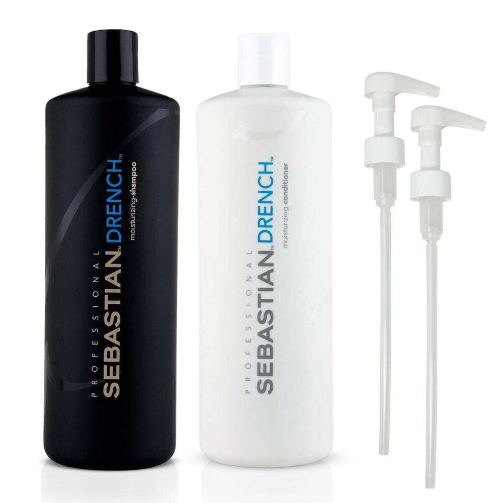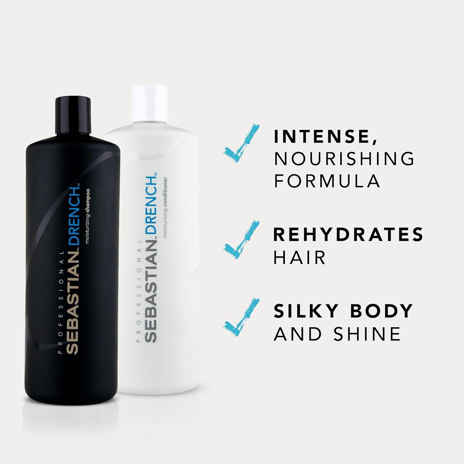 Sebastian Professional Drench Shampoo & Conditioner Duo Set | 33.8 Fl Oz Liter Bottles Prepack with Pumps Included | Intense Hydration | Deep Moisturizing for Dry, Frizzy & Chemically Treated Hair